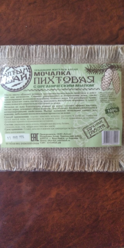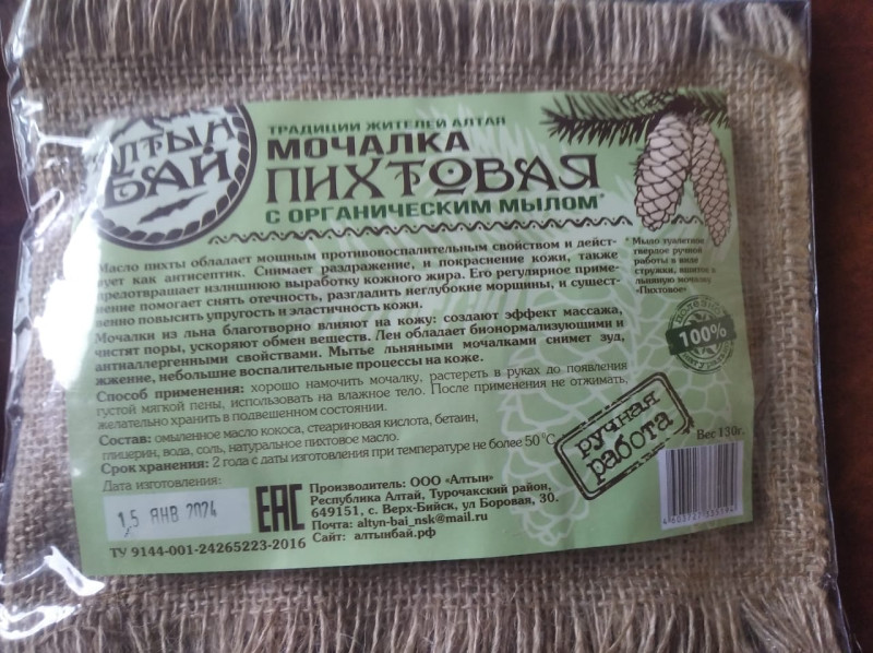 Мочалка для тела с органическим мылом Алтын бай 130 гр Пихтовая