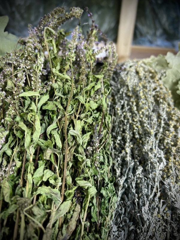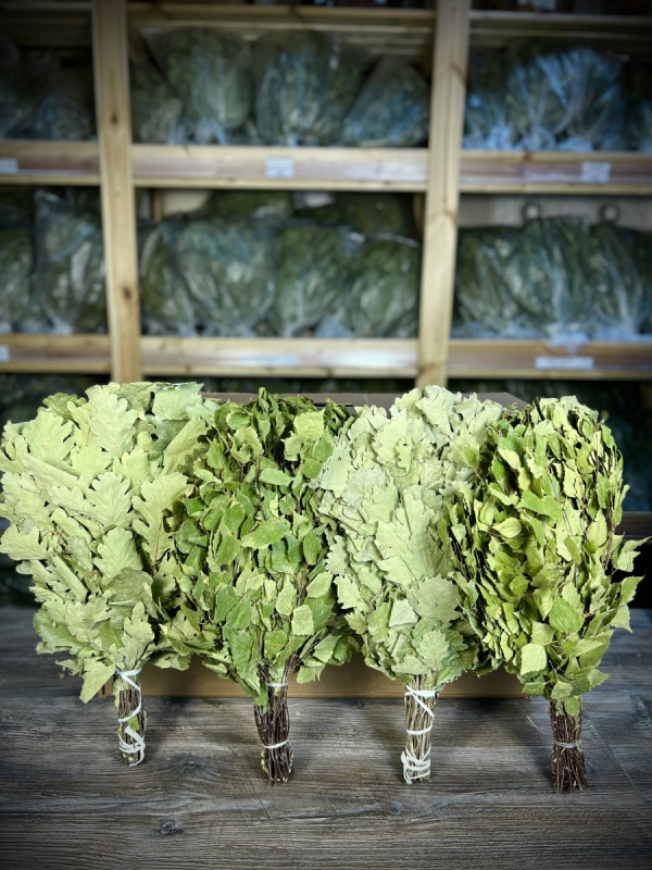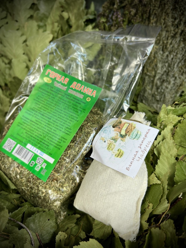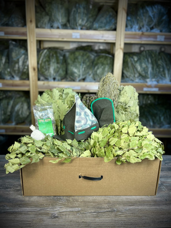 В классический набор мы включили нежные березовые веники, всеми любимый кавказский дуб, набор из ароматных трав, полезнейший травяной чай, рукавицу для парения и шапку.