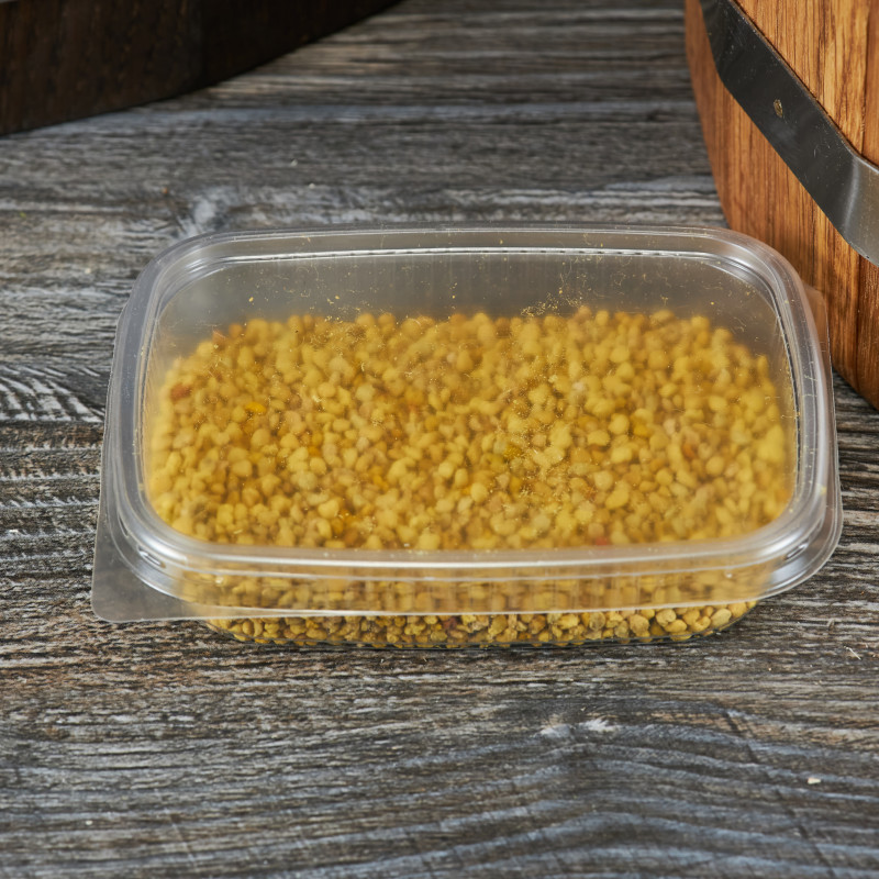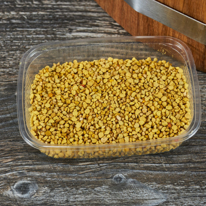 Пыльца соберется пчелами с медоносных растений и закладывается ими в улей. Выглядит она как мелкие катышки размером примерно в 1-2 мм. Оттенок варьируется в зависимости от растения с которого была собрана пыльца.