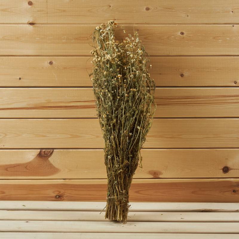 Букет ромашки полевой – один из лидеров продаж в каталоге трав и запарок для бани. Популярность травы связана с широким спектром полезных для организма свойств. Ромашковые веники для бани обладают нежным узнаваемым ароматом и являются поистине многофункциональным аксессуаром: их используют для украшения банного комплекса, ароматерапии, включения в березовые и дубовые метелки, приготовления фиточаев, настоев, косметических средств, банных запарок, компрессов, ванн и ванночек.