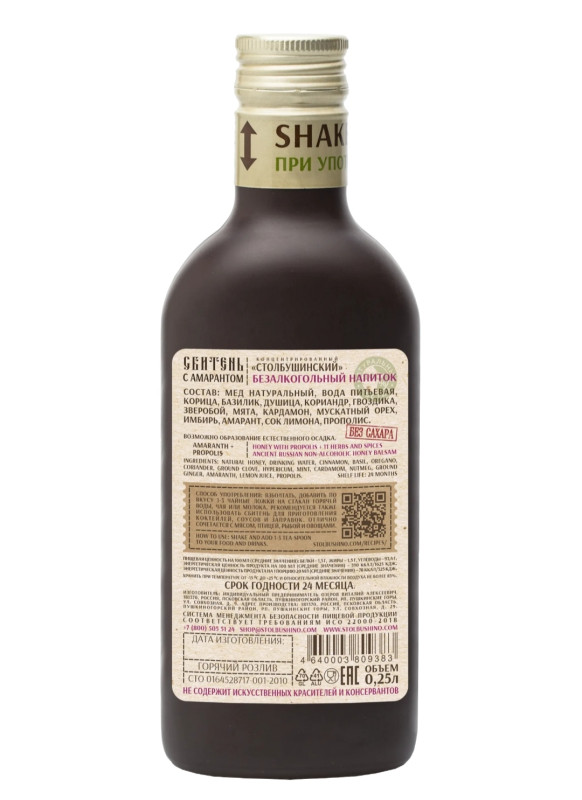 Сбитень "Столбушинский" с Амарантом без сахара, 250 мл стекло